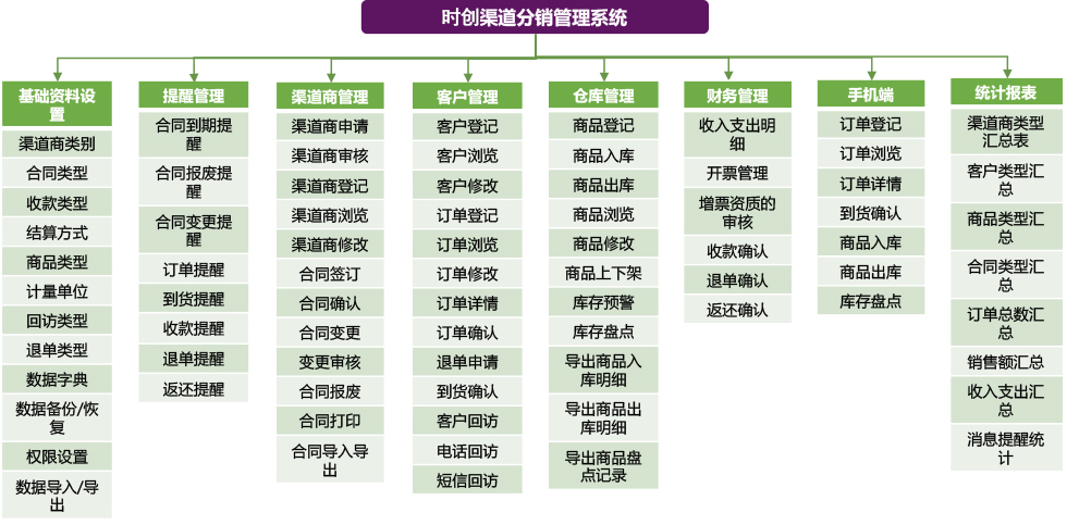 移动互联时代,企业营销不再局限于传统的直销与分销。借助时创渠道分销系统,帮助你打通多层级分销渠道和终端零售渠道,支撑B2B、B2C、O2O等电商模式,构建电商 + 企业整体供应链、电商+财务、电商+零售、电商+传统分销系统等完整营销业态,帮助企业提升业务效率,拓展业务渠道,增强渠道连接,形成通畅的信息化体系。
